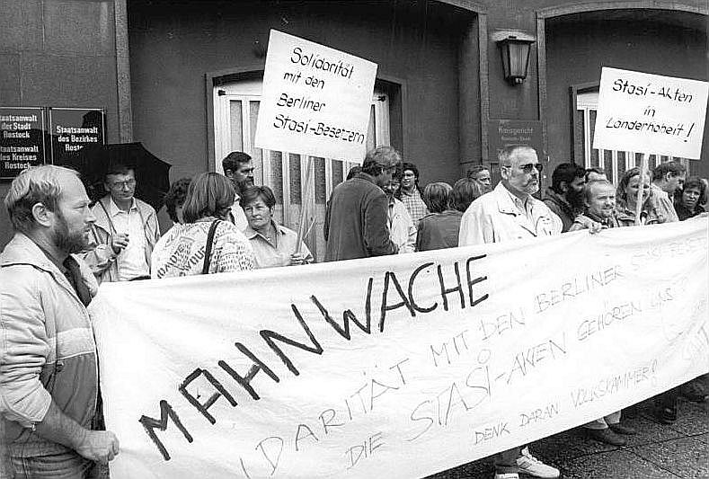 Enteignung der Geschichte – Mahnwache des Neuen Forums vor der früheren Stasi-Verwaltung in Rostock 1990 (1)