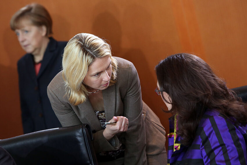 Seit sie das Amt der Familienministerin besetzt, gilt selbst Ursula von der Leyen als harmlos. Ständig fällt ihr Neues ein: Mutterschutz für Praktikantinnen, Lohngerechtigkeitsgesetz, gleichgeschlechtliche Ampelmännchen – furchtlos erweitert sie den SPD-Forderungskatalog, koste er, was er wolle. Das Gefährliche dabei würde ein Hundezüchter vielleicht so ins Stammbuch eintragen: Sie lässt nicht ab. Die Genossin ist absolut schmerzfrei.