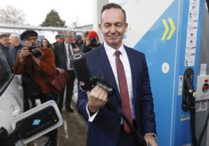Im Hintergrund sind die E-Autos unserer Politiker zu sehen.