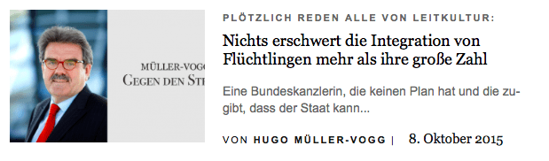 „Dort warten dann Zelte oder Massenunterkünfte, ist endloses Schlangestehen vor improvisierten Behördenschaltern angesagt, entsteht untätige Nähe zu den ebenfalls geflüchteten Gegnern aus der Heimat, wird die Eingliederung in eine fremde Welt verlangt. Die Flüchtlinge suchen hier Frieden, Sicherheit und Ordnung – und landen in überfüllten Aufnahmelagern mit gesteigertem Konfliktpotenzial,“ schreibt Stefan Aust. in der WELT.