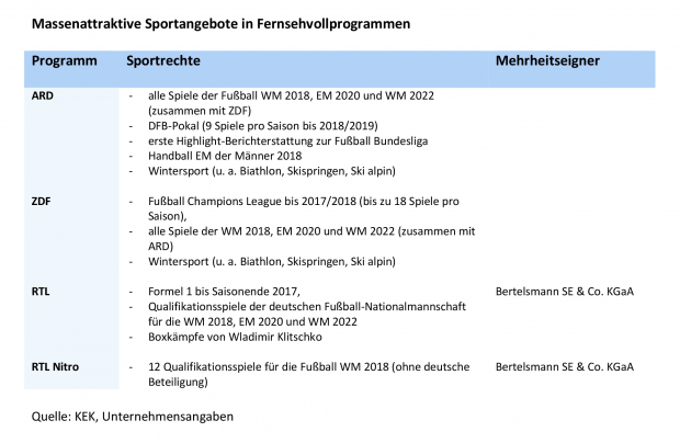Das dumme ist nur: Die rundfunkspezifische Teuerung ist selbstgemacht. Genau hier liegt der Fehler von ARD und ZDF: Sie spielen mit den Milliarden der Gebührenzahler in den oligopolistischen Hinterzimmern der großen Anbieter mit; sie zocken mit der korrupten Fifa und der fragwürdigen Formel 1. „Der Wettbewerb hinsichtlich des Vertriebs und des Erwerbs von Sportrechten zeichnet sich durch einige wenige mächtige Teilnehmer auf allen Ebenen der Angebotskette aus: An der Spitze der Wertschöpfungskette stehen die anfänglichen Inhaber von Zugangsrechten zu Sportveranstaltungen …“, schreibt etwas die Kommission zur Ermittlung der Konzentration im Medienbereich (KEK).