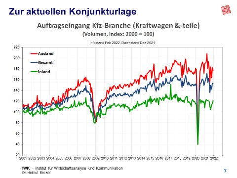 • In China hat die Wirtschaft die schwerwiegenden Corona-Folgen weitgehend hinter sich gelassen, die Verhältnisse am Automobilmarkt sind wieder normal: d.h. Wachstum. Mit 2,0 Millionen nahmen die Pkw-Verkäufe um 27 Prozent gegenüber dem – wegen des damaligen Neujahresfestes besonders niedrigen – Vorjahresniveaus zu, der neunte Wachstums-Monat in Folge.