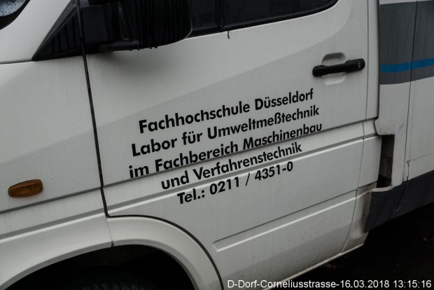 Es sind zwei Messanlagen. Eine Messanlage ist eine mobile Anlage der Fachhochschule Düsseldorf, die unmittelbar vor der eigentlichen Messanlage steht, die für die offiziellen Messwerte in dieser Straße zuständig ist. »Was in der mobilen Anlage gemessen wird, entzieht sich meiner Kenntnis.«