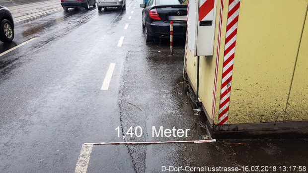 Norbert K. hat nachgemessen: Die eigentliche Messanlage steht genau 1,40 Meter neben dem fließenden Verkehr.