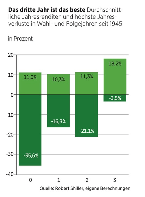 Natürlich gibt es keine Garantie, dass die beobachteten Muster seit 1945 (beziehungsweise seit 1871) auch in Zukunft gelten. Zum einen handelt es sich bei den Renditewerten um Durchschnittsbetrachtungen, von denen es zum Teil auch erhebliche Abweichungen gab. Zum anderen könnten künftige Präsidenten sich deutlich von der Politik ihrer „Durchschnittsvorgänger“ entfernen. Dann könnten auch die Börsen entsprechend abweichend von den vertrauten Mustern reagieren.
