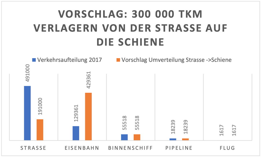 Verlagerung eines Teiles des Straßenverkehrs auf die Schiene