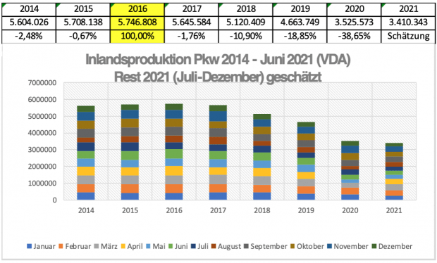 Wohlgemerkt: Die Nachfrage und somit der Produktionsrückgang ging bereits lange vor Corona, wegen des Dieselbetrugsgeschreis, stetig zurück, der Corona-Lockdown kommt noch erschwerend hinzu, kann aber die Ursache nicht verdecken.